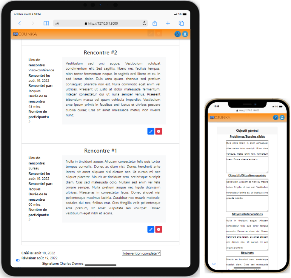 Que ce soit pour la gestion de plans d'interventions psychosociales, pour conserver des notes évolutives sur vos bénéficiaires ou pour consolider de l'information sur des groupes d'aides, Ojunka est la solution!